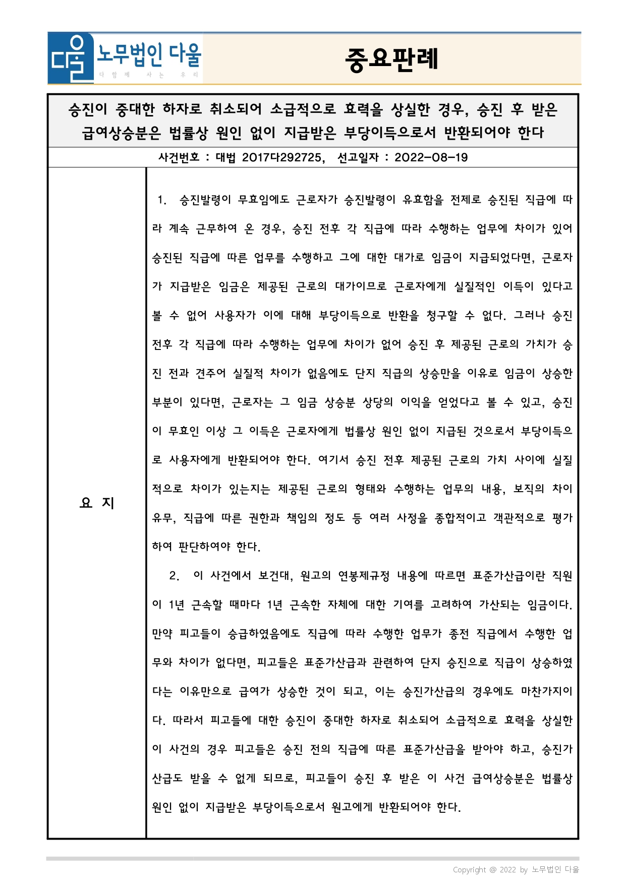 승진이 중대한 하자로 취소되어 소급적으로 효력을 상실한 경우, 승진 후 받은 급여상승분은 법률상 원인 없이 지급받은 부당이득으로서 반환되어야 한다