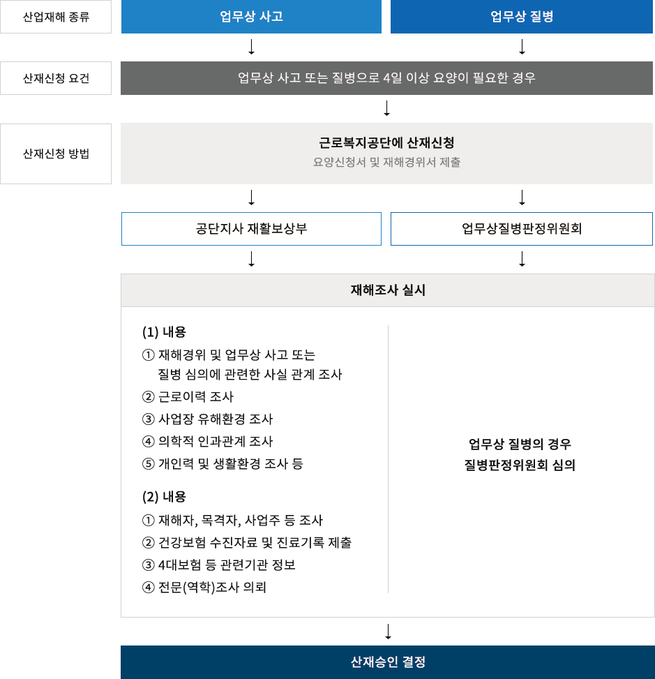 “업무상의 재해”란 업무상의 사유에 따른 근로자의 부상·질병·장해 또는 사망을 의미합니다.(산업재해보상보험법 제5조)구체적으로 사업주의 지배·관리하에서의 업무의 수행 또는 그에 수반되는 통상적인 활동을 하는 과정에서 이러한 업무에 기인하여 발생한 재해를 의미합니다.